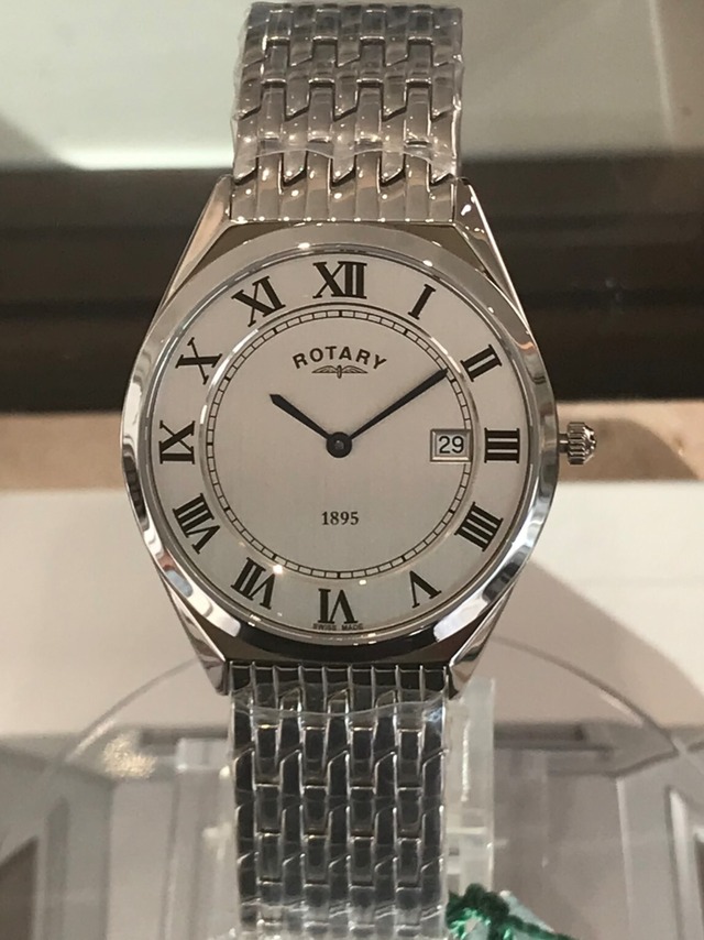 ロータリー ウルトラスリム GB08000/21 Rotary ULTRA SLIM GB08000/21 ULTRA SLIM クオーツ メンズウォッチ ウルトラ スリム コレクションのクラシックなロータリー メンズ ウォッチは、ケースの厚さ4.85mmとその名の通り非常にスリムで、ポリッシュド シルバーのケースとブレスレット、バタフライ クラスプ(中留)が特徴です。視認性も兼ねた上品なデザインはオンタイムの腕元を大人らしく飾り、あなたのスタイルにエレガンスとシンプルさを加える完璧なデイリーウォッチ。この価格帯でこの薄さは非常に魅力的です。 ●ロータリー(イギリスの時計メーカー) 1895年時計ケース製造メーカーから始まり、独創性高い時計を造りイギリスで高く受け入れられて、事業を世界展開へ拡大。「ウルトラスリム」は、薄さに拘り、世界中で支持されるなど、ROTARY社のケース製造分野での高い技術力に裏打ちされているのです。現在、ROTARY社は、イングランド・プレミアリーグ「CHELSEA FC」のオフィシャルタイムキーパーとして、グローバルパートナーシップを結んでいます。 ★スタッフのおすすめポイント★ 厚さがなんと5mmを切ってます! その名の通り、とにかく薄い時計ですが、それでいて軽々しくなく、しっとりとした重厚な質感で品格があります。おすすめですよ! 仕様 駆動方式 クオーツ(RONDA社製) バンド種類 メタルバンド:ステンレス カレンダー機能 有 ガラス サファイアクリスタルガラス ケースの材質 ステンレス ケース径36mm ケース厚4.85mm 重量85g 日常生活防水 メーカー2年保証
