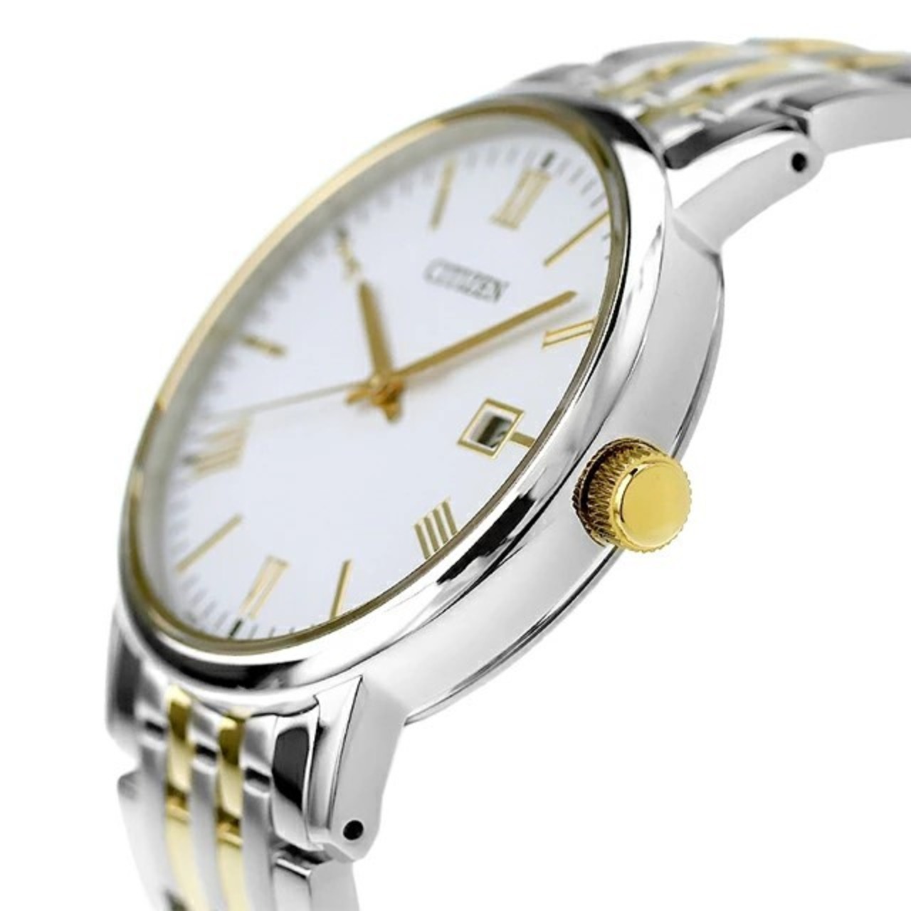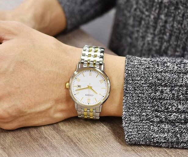 ロングセラーのシンプルなカレンダー付モデル。適度なボリューム感と細かいコマのブレスレットが、ベーシックながら華やかさを演出してくれます。レディースモデルもありますので、ペアウォッチとしてプレゼントにも最適ですよ♪