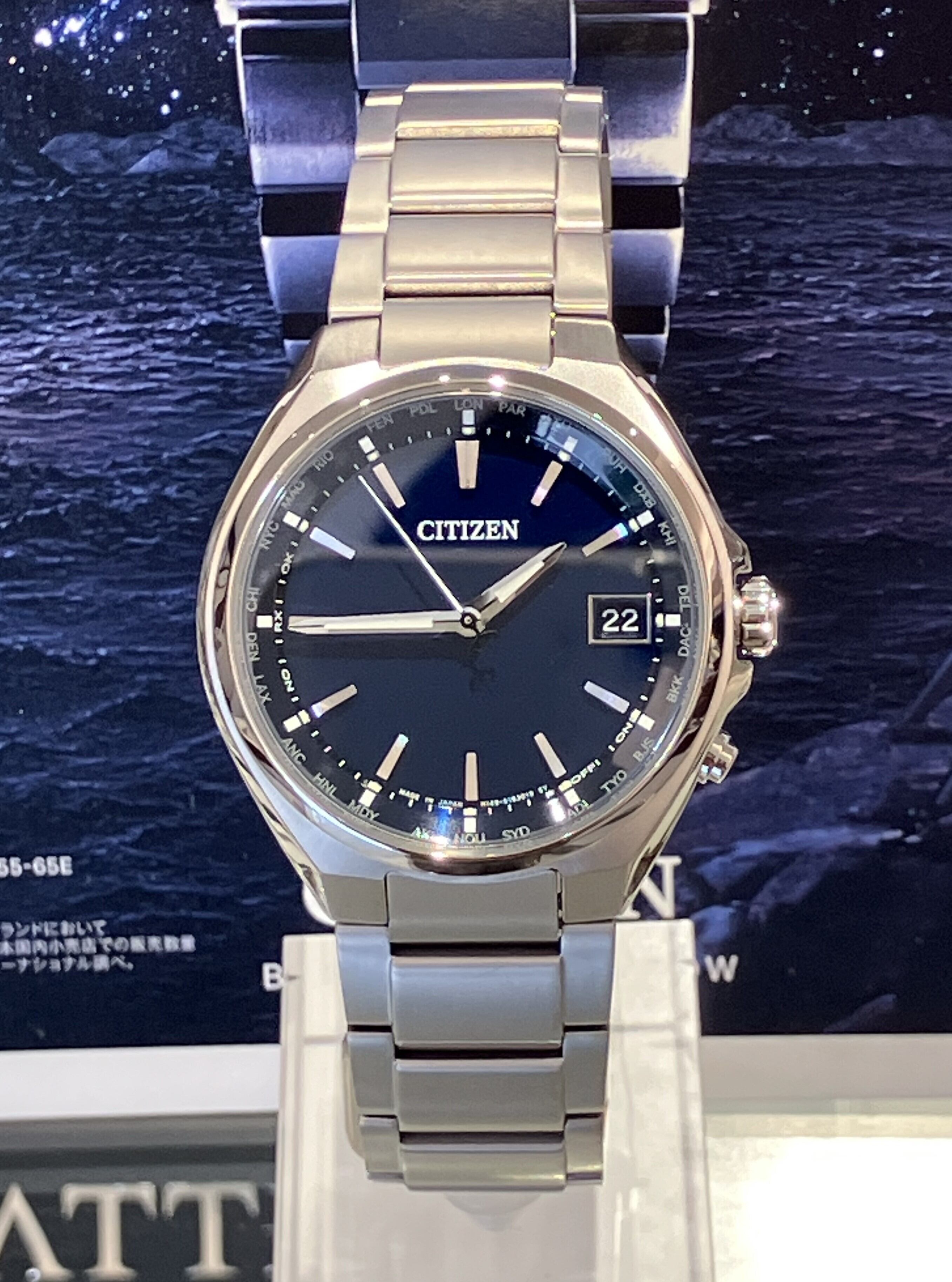 大人気CB1120シリーズのネイビーです。ビジネスにも最適な軽くて腕なじみのいいサイズ感は、やはりスーツによく似合います。パーフェックス搭載の高性能アテッサでこの価格帯は魅力ですよ。おすすめです!