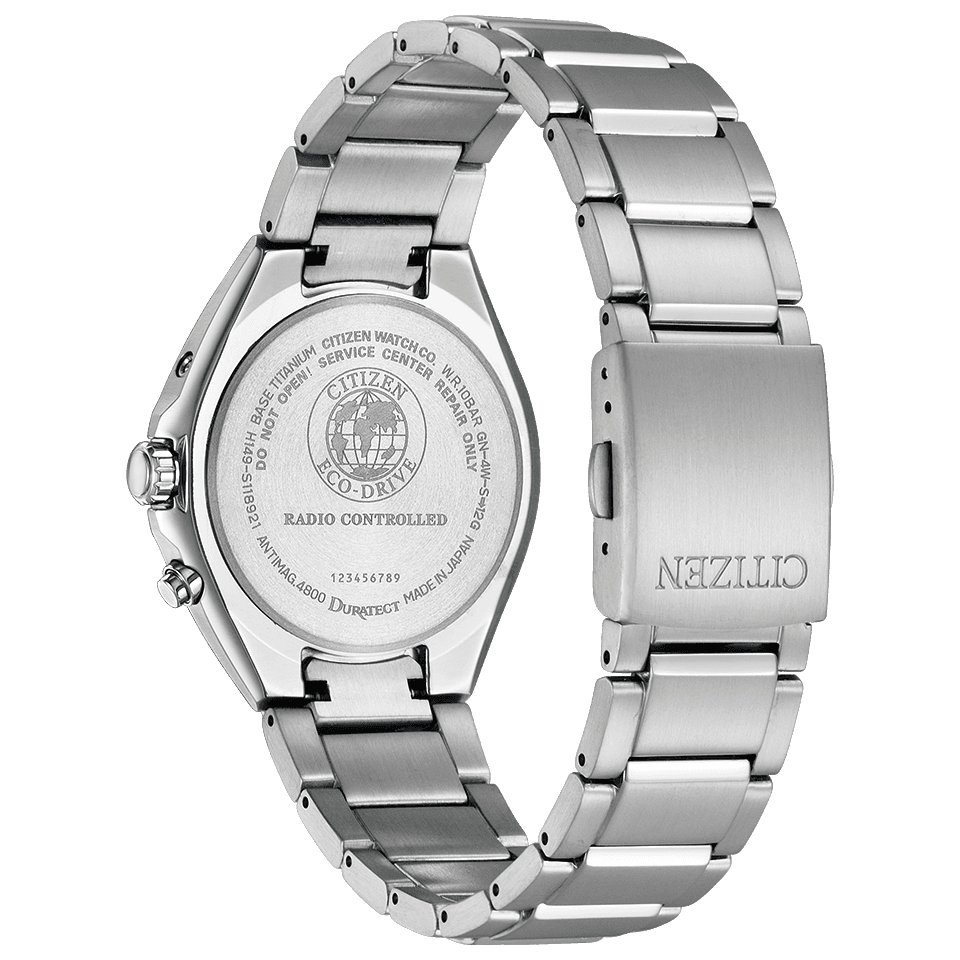 シチズンの技術の粋をつぎ込んだアテッサ。わずかな光でも動き続ける「光発電エコ・ドライブ」や、日本、中国、アメリカ、ヨーロッパの世界4エリアの電波送信所から送信される標準電波の受信に対応している「電波時計(ワールドタイム)」など、過酷な環境に耐えうるハイスペックな機能を搭載。素材は、キズに強く、軽く、肌にやさしく、さらにサビにくい「スーパーチタニウム™」を採用しています。