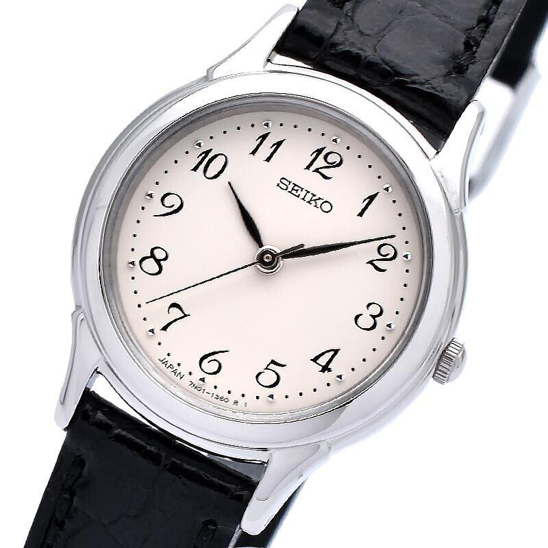 時代がどう変わろうとも流されない、不変のものというのが世の中にはありますが、この時計もそういう価値観を持ったものの一つでしょう。文字盤の少し焼けたようなアンティークホワイトの色味も渋くて◎。まさにシンプルイズベストを体現した、飾らないドレスウォッチです。ペアになるメンズモデル:SBTB005もあります➞https://jikodo.base.shop/items/123306552