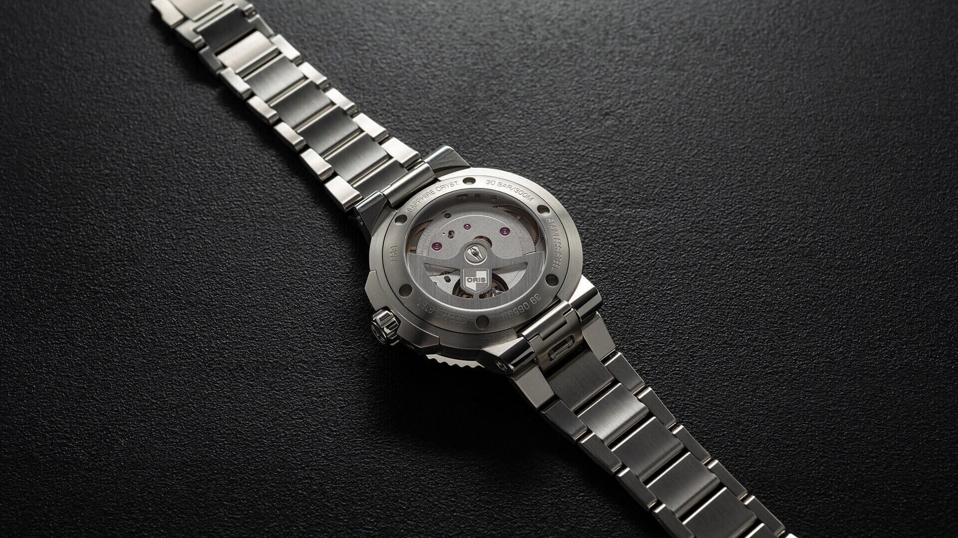 オリスはキャリバー400につぎ込んだ最新技術とその機能性に自信を持っています。このムーブメントを搭載した時計は全て、MyOrisに登録することで10年間の保証が付与されます。また、キャリバー400の推奨オーバーホール期間は10年です。つまり、事故による損傷や防水機能検査など以外には、2030年までオーバーホールなどメンテナンスに出す必要がないということです。これは新しい基準です。