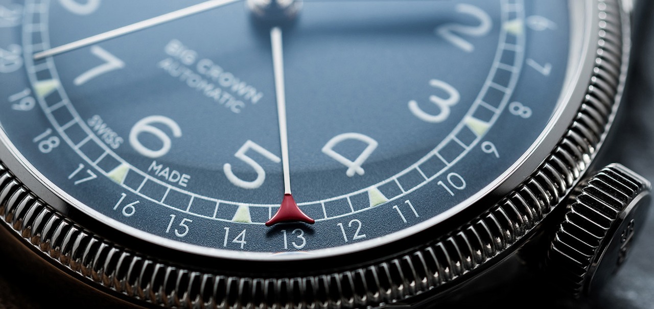 ビッグクラウンポインターデイトは、80年以上前に発表されて以来愛され続けています。40㎜のスチールケースに大き目のリューズとコインエッジベゼル、ポインターデイト針、コブラ針、アラビア数字のデザインは普遍です。スイスが誇る品質を備えた、飽きの来ない時計です。