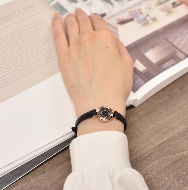 大ぶりな時計が多い昨今、このレトロなサイズ感は超キュート。女性らしさを引き立てる大人かわいいデザインです。