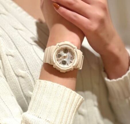 ベーシックスタイルと相性の良い電波ソーラーモデルです。ボリューム感のあるフォルムのBGA-2800シリーズで、カラーは様々なコーディネートに取り入れやすいくすみ系のピンクベージュ。機能面では、耐衝撃構造や10気圧防水、世界6局の電波を受信し時刻を自動修正するマルチバンド6、ワールドタイム、タフソーラー等、頼れる機能を備えています。