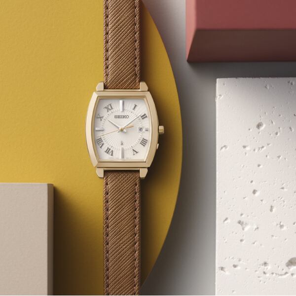 上品なシャンパンゴールドにブラウンレザーのカラーリングは、どんな服にも合わせやすく重宝します。メイドインジャパンが誇る高性能な電波時計でありながら、どことなくヨーロピアンテイストの漂う、とってもお洒落な時計です。