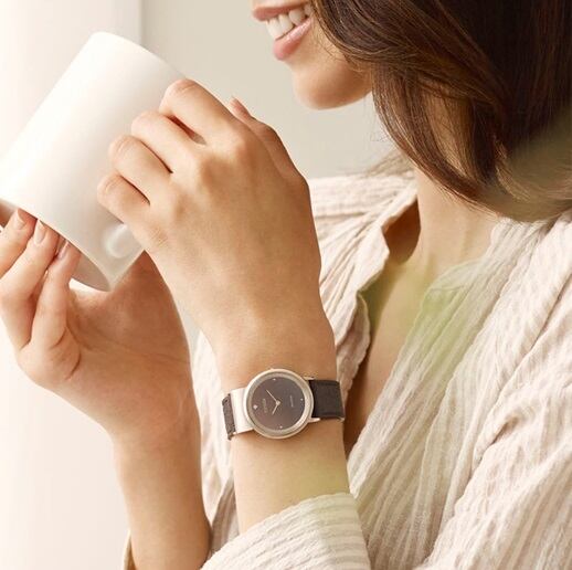 肝は、やはりドライな質感のパイナップルレザーバンドでしょう。アシンメトリーなピンクゴールドケースにサンストーンのごとく煌く文字盤。この美しいデザインを最大限引き立てられるのは、この色、この素材のバンド以外には考えられません。そして何より「SDGsを身に着ける」というセレブリティ(心の豊かさ)を体感できることこそが、この時計の一番の魅力ではないかと思います。