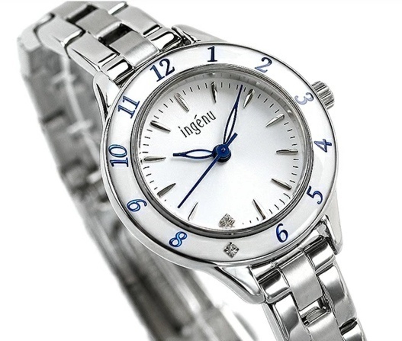 エナメルっぽいホワイトベゼルにメタリックブルーのアラビア数字、そして針もネイビーで超クール。色違いモデルもそれぞれかわいいのですが、この白xブルーは清楚で大人っぽく、爽やかな感じでおすすめです。