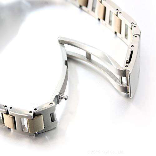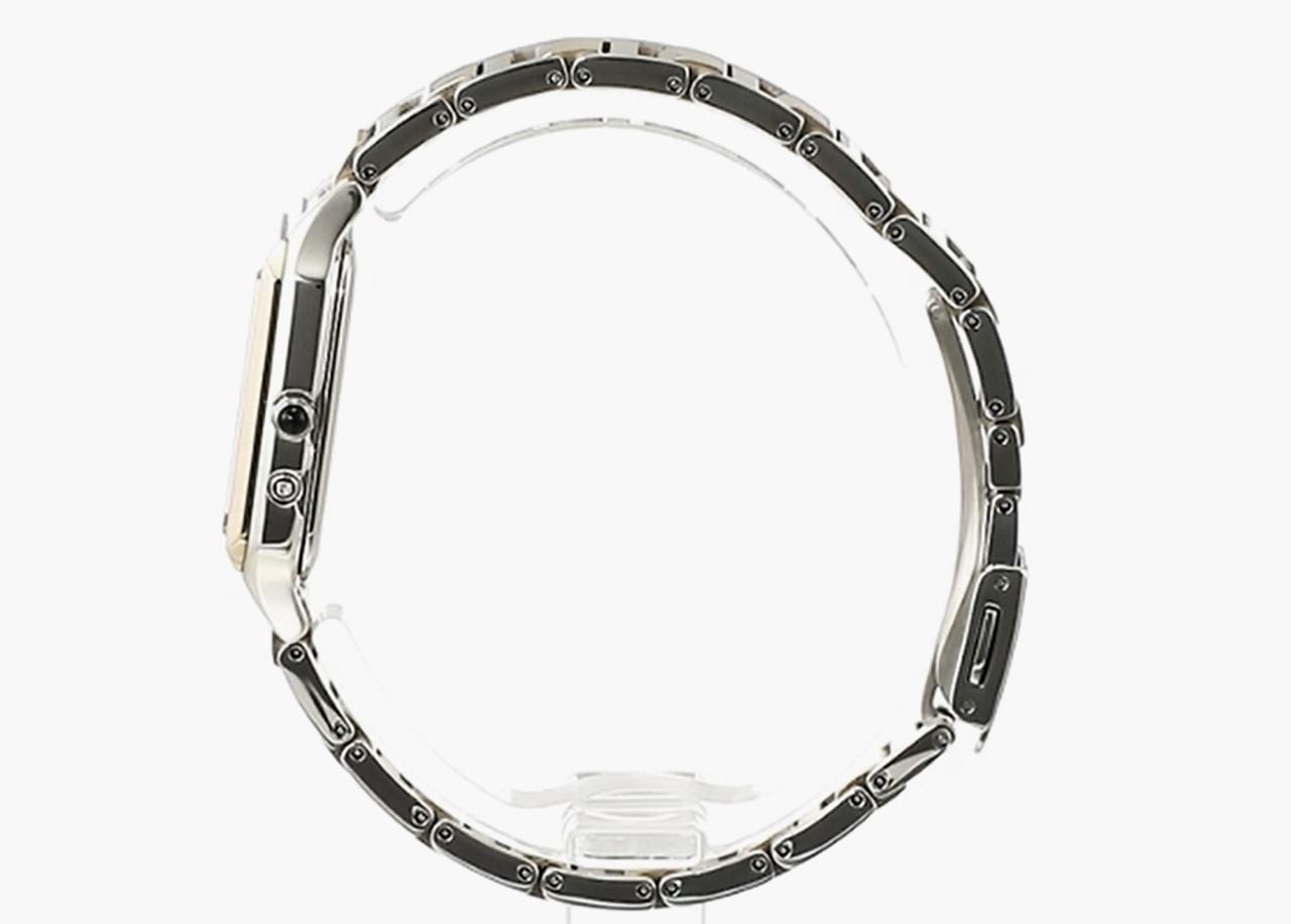 やはり黄金比の角型ケースは美しいですね。シャンパンゴールドとのコンビは、決して派手でなく品の良さが際立つ絶妙なカラーバランス。デキる大人の女性を演出してくれる、かなりハンサムな格好いい時計です。
