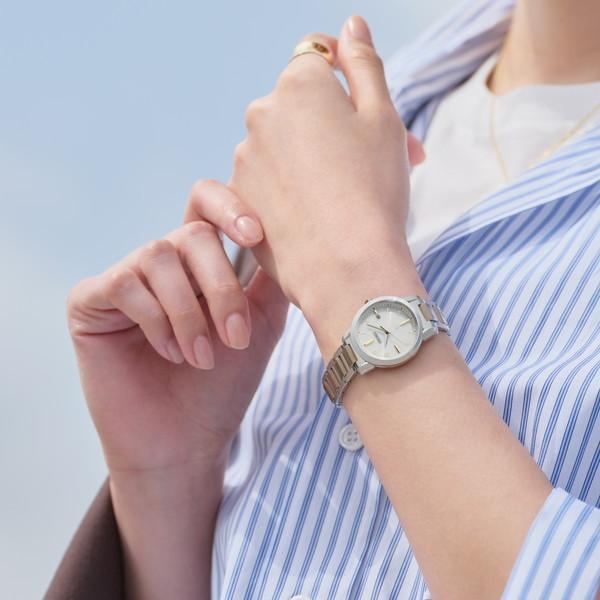 池田エライザさんが広告で着用しているマスコミモデルです。シンプルな中にも文字盤のさりげなく凝った模様が◎。シリーズ全体に言えますがゴールドの配分が絶妙で、とても上品なデザインに仕上がっていてお奨めです。