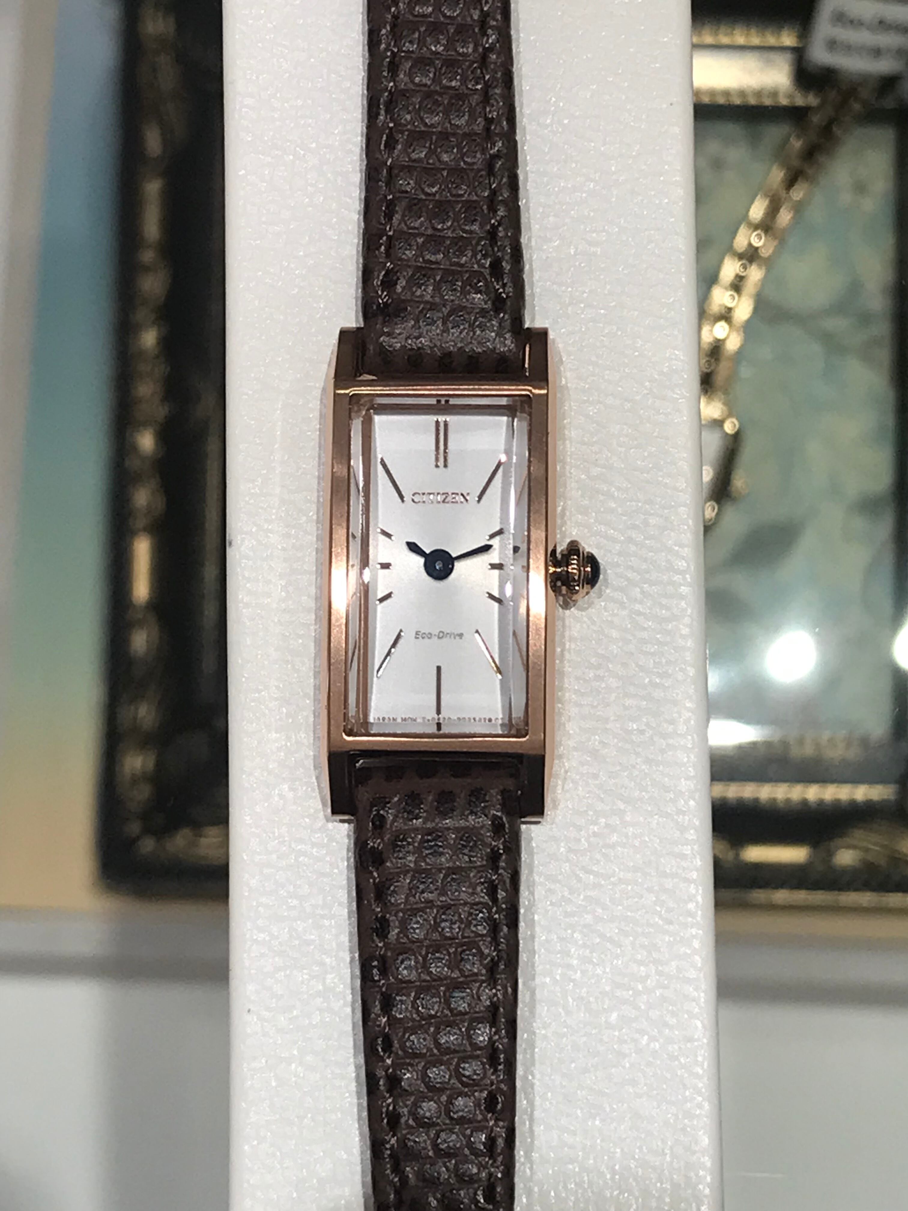 アンティークなデザインでありながらエコ・ドライブという機能性も併せ持つ、 シチズン Kii:(キー)。ハンサムな印象のケースラインが特徴の長角ケースに、クラシカルな印象のカットガラスがポイント。 文字盤はすっきりとした印象のバーインデックスを採用し、小さいながらも視認性抜群。文字盤の繊細なデザインとともにクラシカルな雰囲気を漂わせるモデルです。プレゼントにもおすすめです。