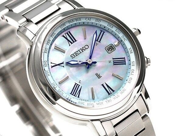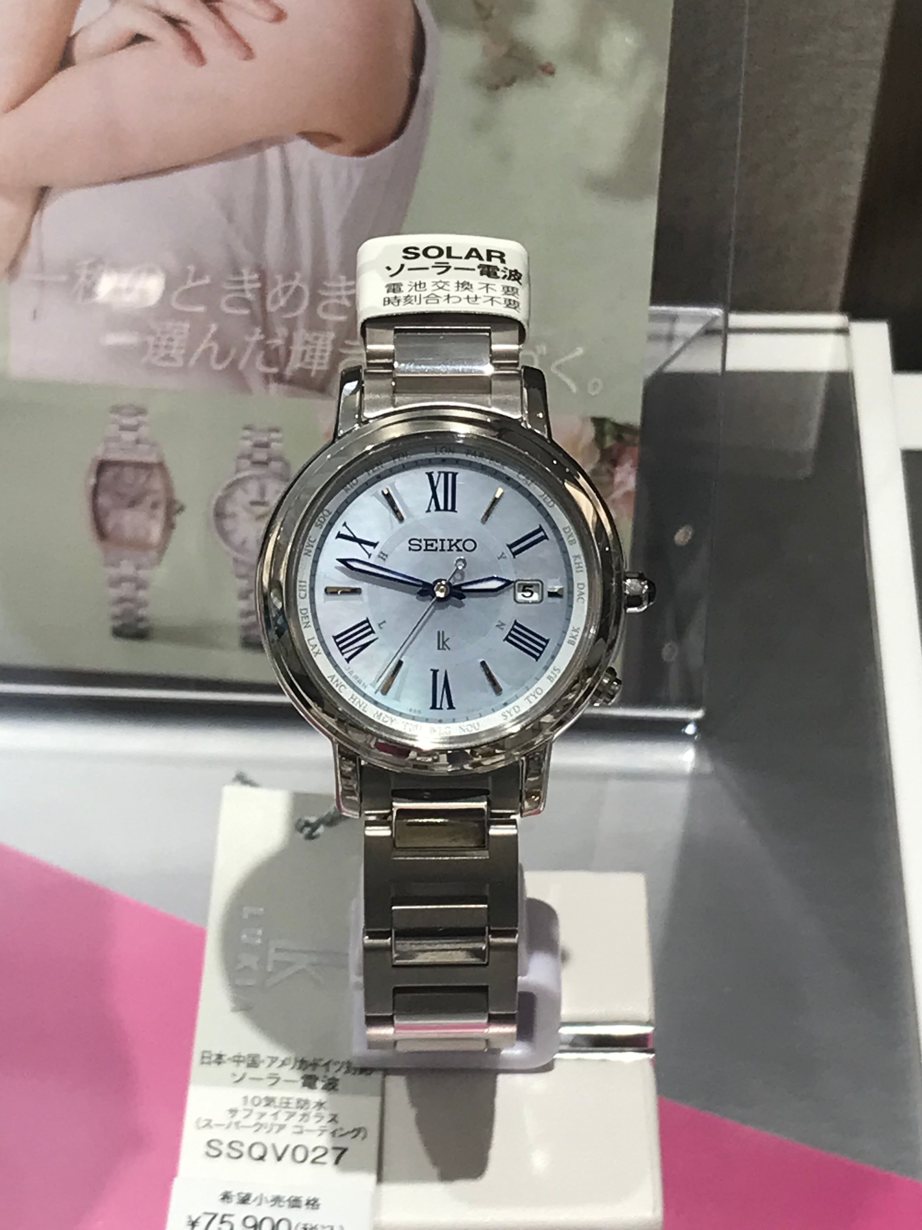 大きすぎず小さくない絶妙なサイズ感が◎。この白蝶貝の文字盤が爽やかな色味でいいですね。光の加減で彩雲のような虹色が現れ、二つと同じものがないのも魅力。特にブルー系貝文字盤は意外に少なく貴重ですよ。今後入手が難しくなるモデルですので気になる方はお早めに!