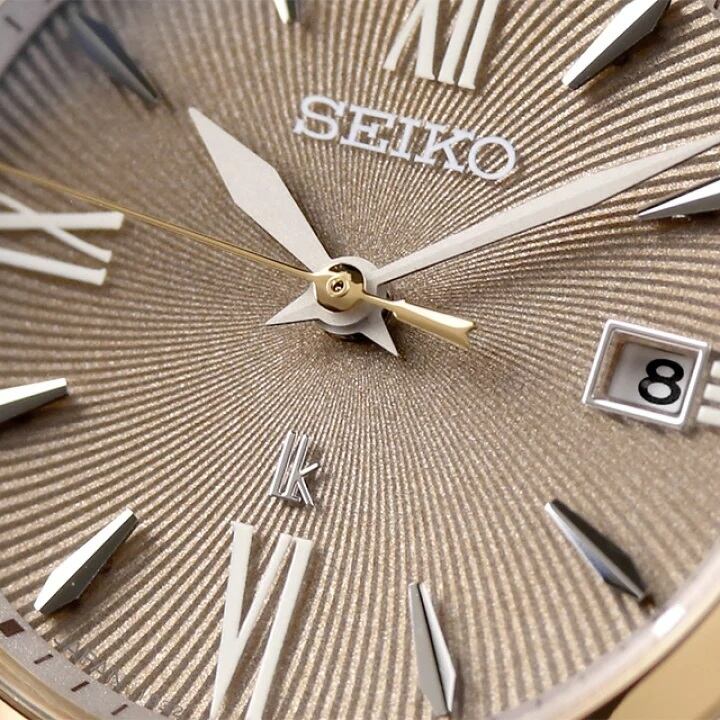 もちろん池田エライザさん着用のマスコミモデルも素敵ですが、当店のイチ押しは、身に着けると優雅な時間を過ごせそうなこれ。ベゼルのゴールドと文字盤のアースブラウンが絶妙な色バランスで、とっても綺麗な時計ですよ!