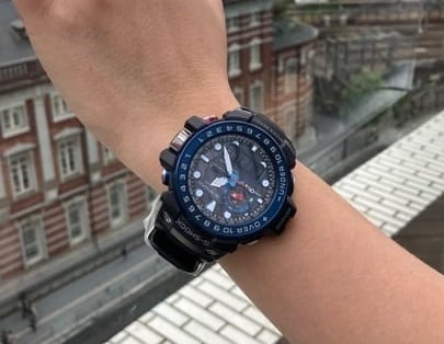トリプルセンサー搭載モデルはプロトレックが代表的ですが、G-SHOCKでやるとこうなります! カラーリングから何から完璧なデザイン。特にベゼルのネイビーの質感がこの時計の品格をグッと上げてくれています。これぞ「マスターオブG」、まさに「海の男仕様」の本格派。惚れ惚れするほどに格好いいですよ!