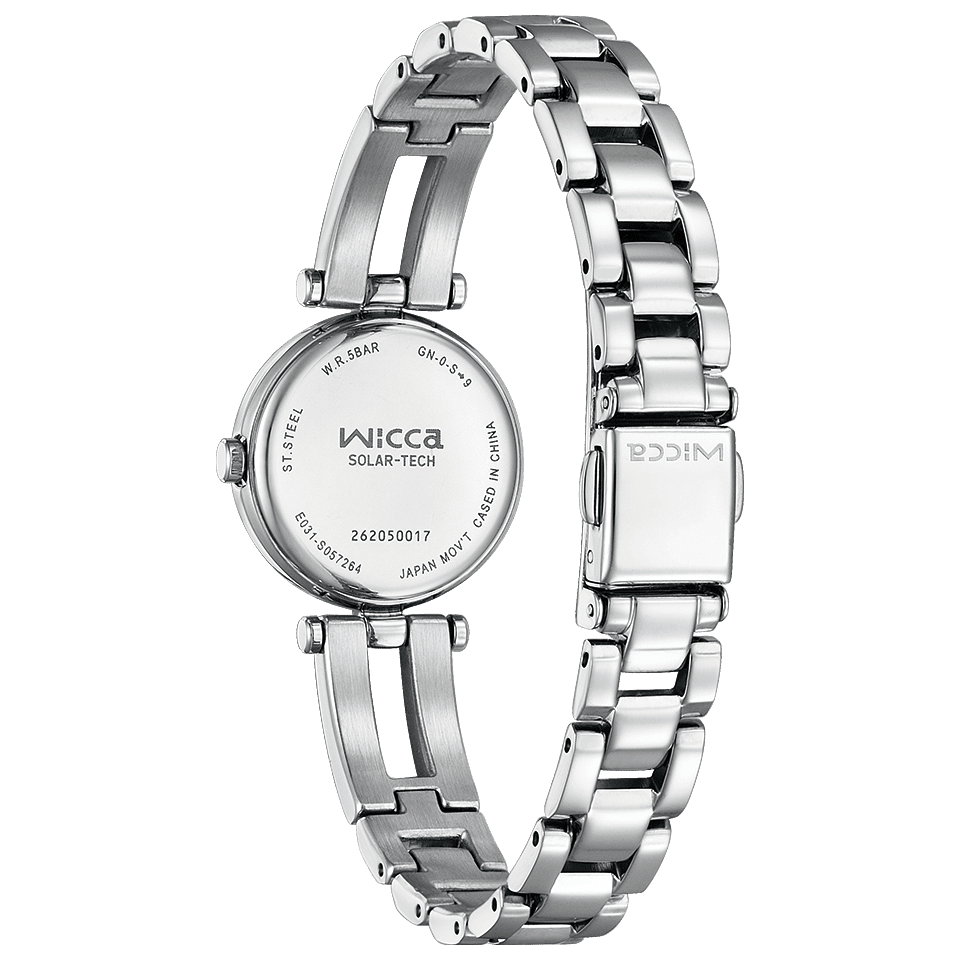太陽光やお部屋の明かりなどが文字板を通り抜け、内部のソーラーセルに当たることで電気エネルギーを発生させ、時計を動かしています。