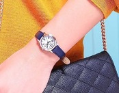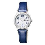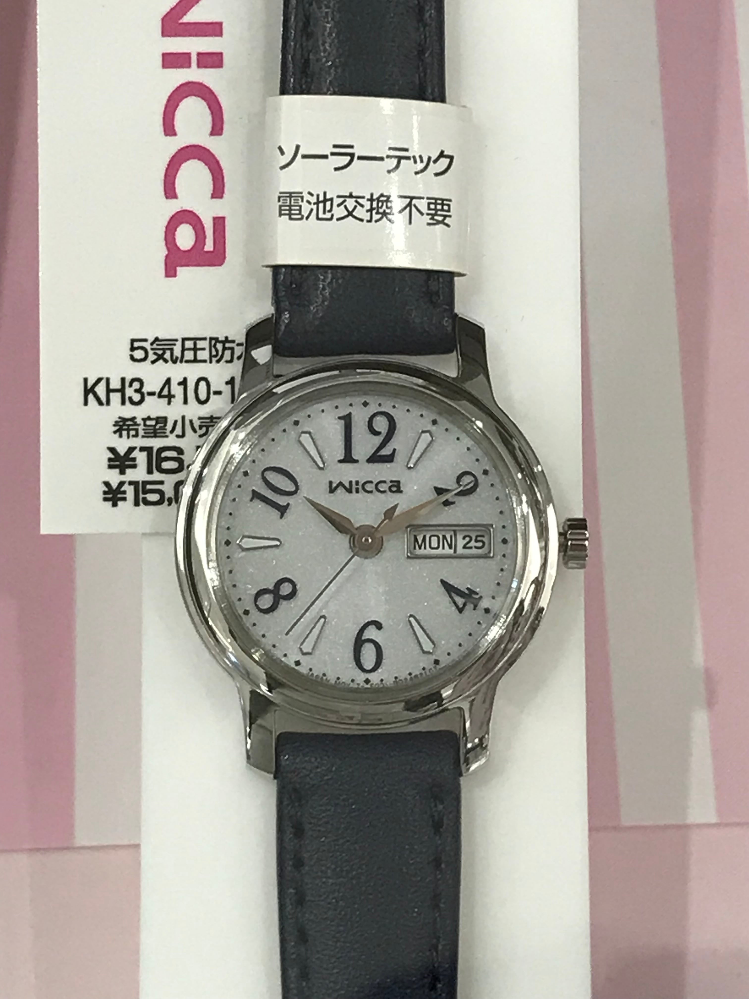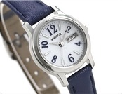 wiccaの定番デイ&デイトから、女の子がときめく“ネイビー”の革バンドモデルが登場。ベーシックなデザインを生かしながら、遊び心のあるアラビアインデックスを組み合わせています。ネイビーの革バンドに合わせて、インデックスもネイビーで統一。視認性を確保しながら、おしゃれな印象に仕上げています。・学生や社会人の方にもおすすめの曜日つきモデルです。