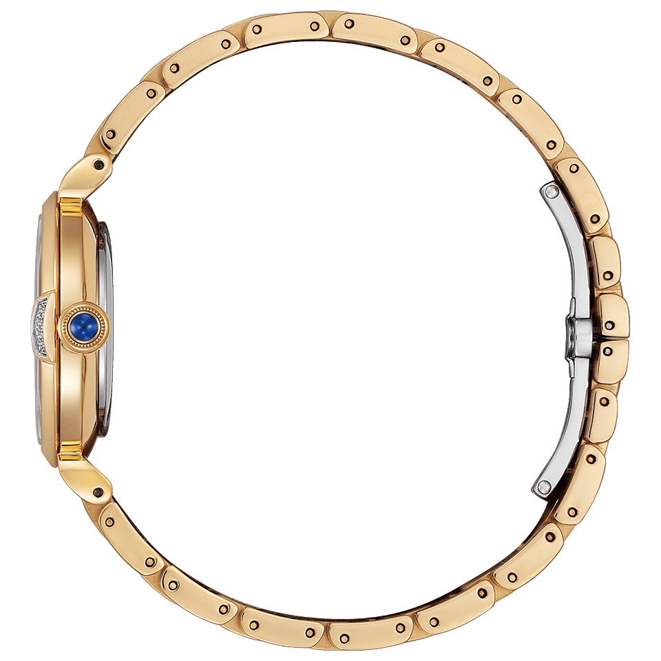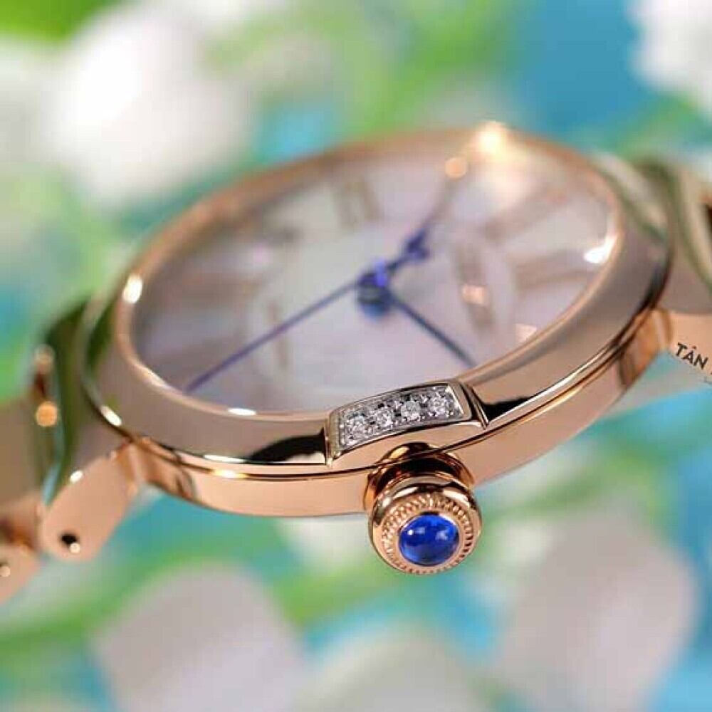 8時の位置で輝く1ポイントのダイヤモンドは雨あがりのスズランに輝く花雫を表現。幸せへと誘うスズランの香水瓶をイメージして3時の位置にあしらった4ポイントのダイヤモンドとりゅうずを彩るブルーのアクセントが、腕元を見るたびに可憐な、スズランの花を手にした時の幸せな気持ちを呼び起こしてくれるモデルです。
