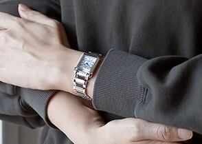 人気シリーズのラインナップに白蝶貝の文字板が加わりました。トレンドを押さえた既存のメッシュバンドもお洒落ですが、やはりこのスクエアケースにはしっとりとした重厚感のあるメタルバンドがよく似合いますね。海外のハイブランドにも引けを取らない、高級感のあるデザインでおすすめです。
