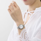 大人気、福原遥コラボレーションモデルの第3弾です。白蝶貝の文字盤というだけでも美しいのに、インデックスのキレのある煌めき方には、きっと誰もが目を奪われることでしょう。画像では分かりづらいのですが、その華やかさはまさに春の陽射しを受けるサンキャッチャーのよう。電波でソーラーで替えバンドも付くなんてお得感満載だし、限定BOXで特別感もあるので、プレゼントしたら絶対に喜ばれること間違いなしですよ!