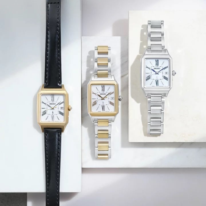 バランスの良い長角フォルムは堅苦しくなりすぎず、ワークシーンのジャケットスタイルから、オフのワンピーススタイルまで幅広いシーンで活躍する万能ウオッチです。「カラーリリー」のフォルムをモチーフにしたりゅうずがアクセントとして輝く上質なデザインです。