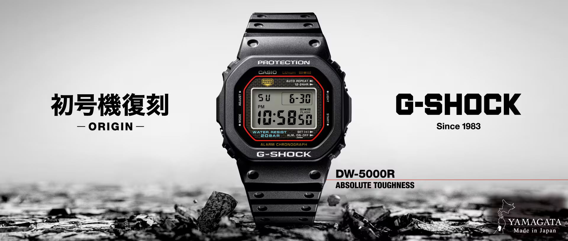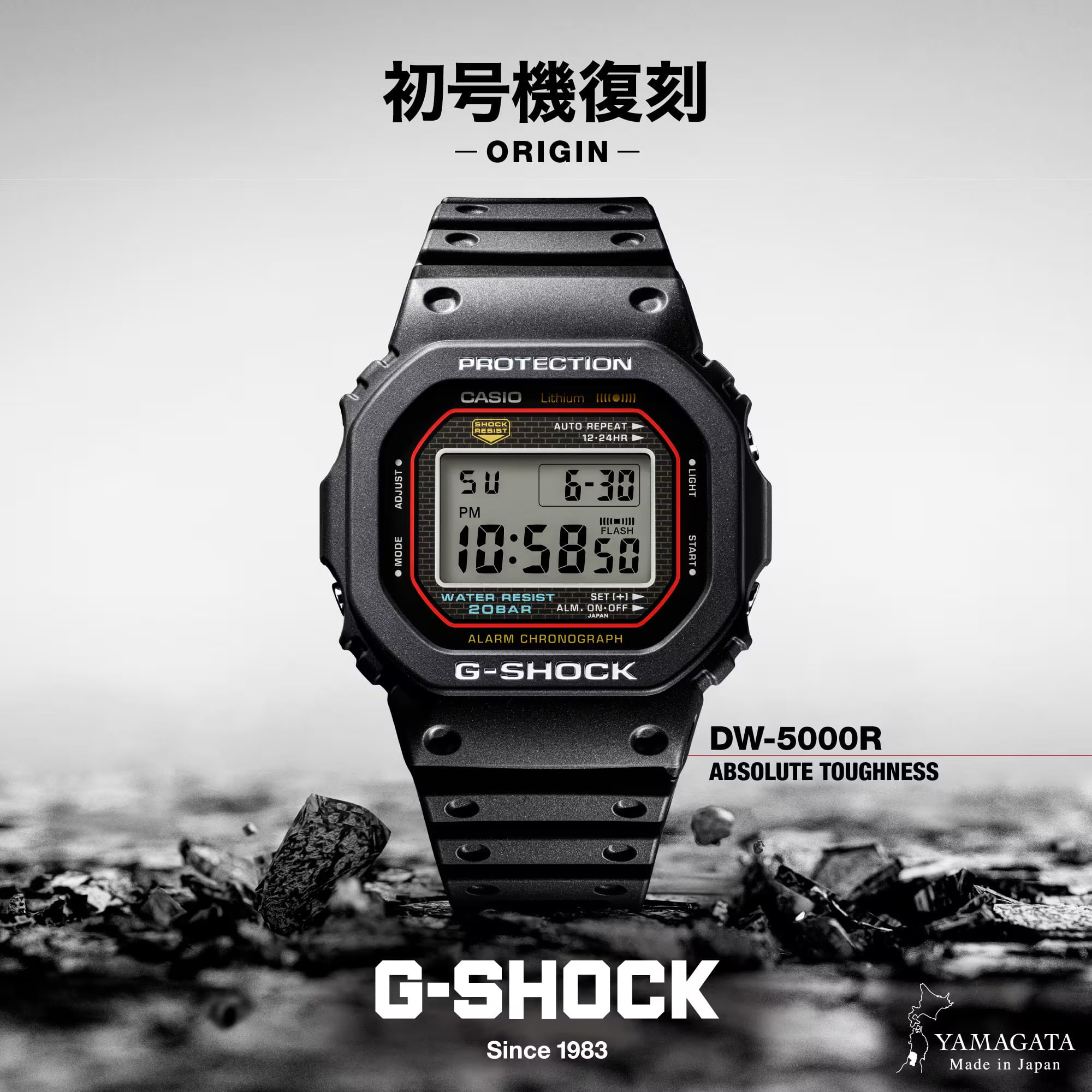ブランドの進化と継承を象徴する「初代G-SHOCK 復刻モデル」です。