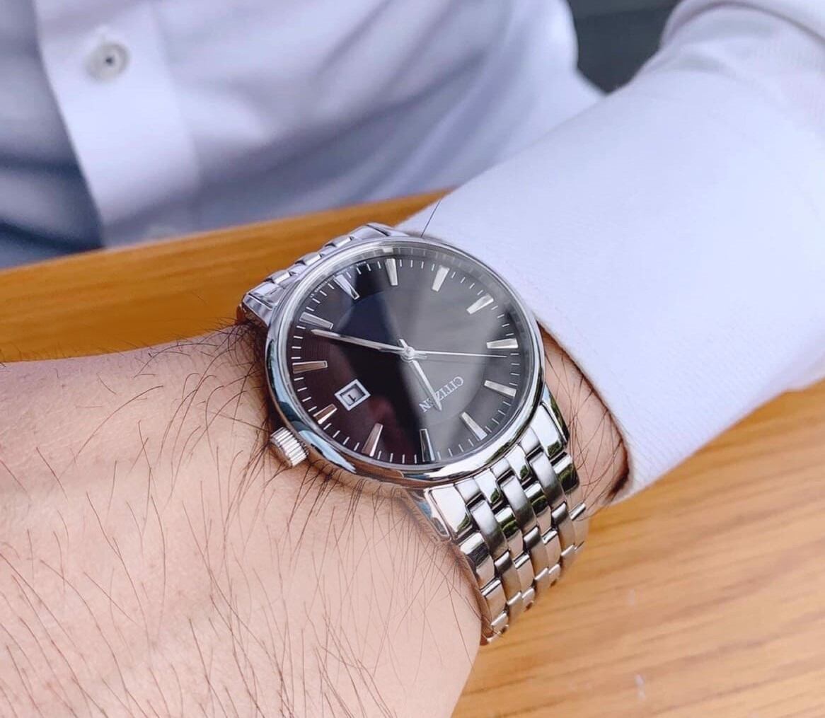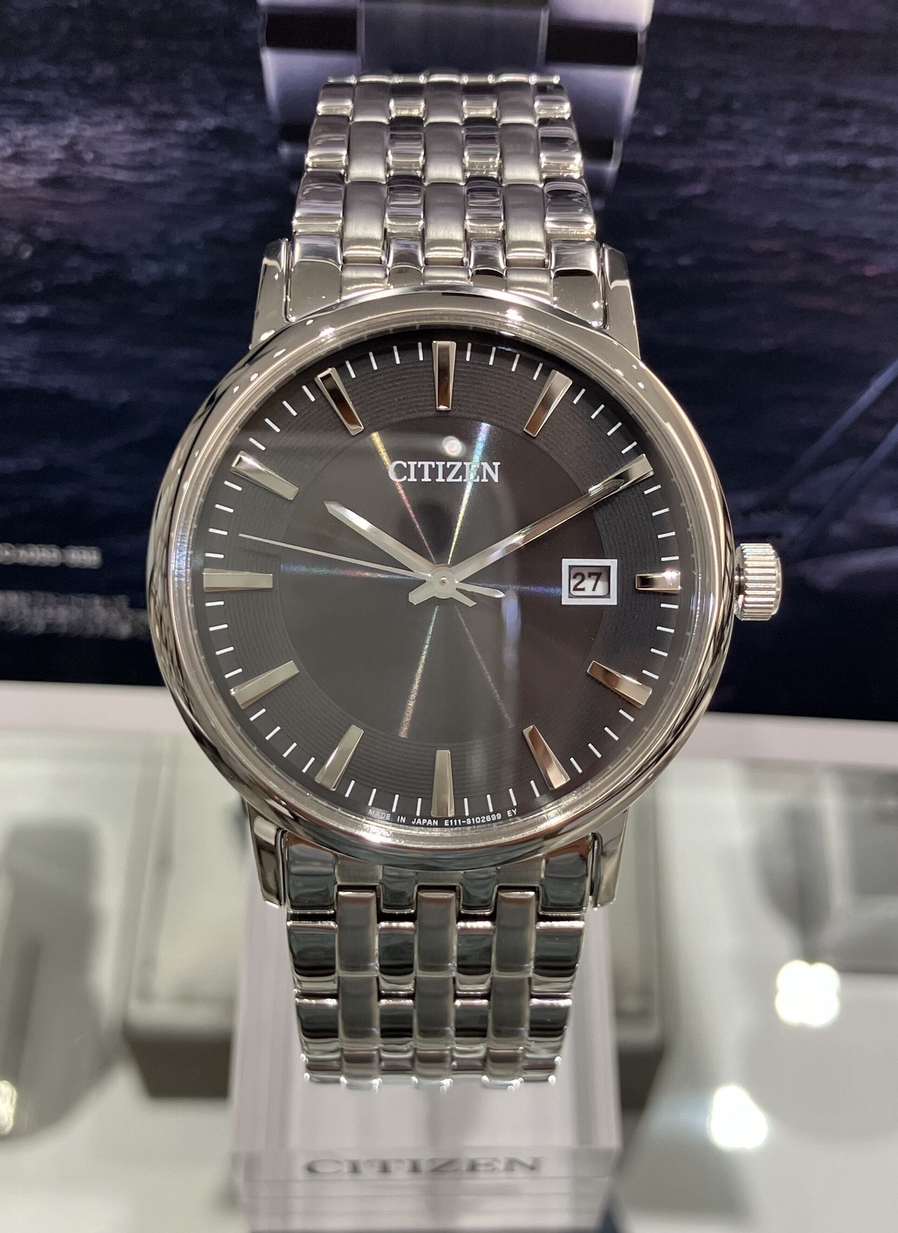 ロングセラーのシンプルなカレンダー付モデル。適度なボリューム感と細かいコマのブレスレットが、ベーシックながら華やかさを演出してくれます。レディースモデルもありますので、ペアウォッチとしてプレゼントにも最適ですよ♪